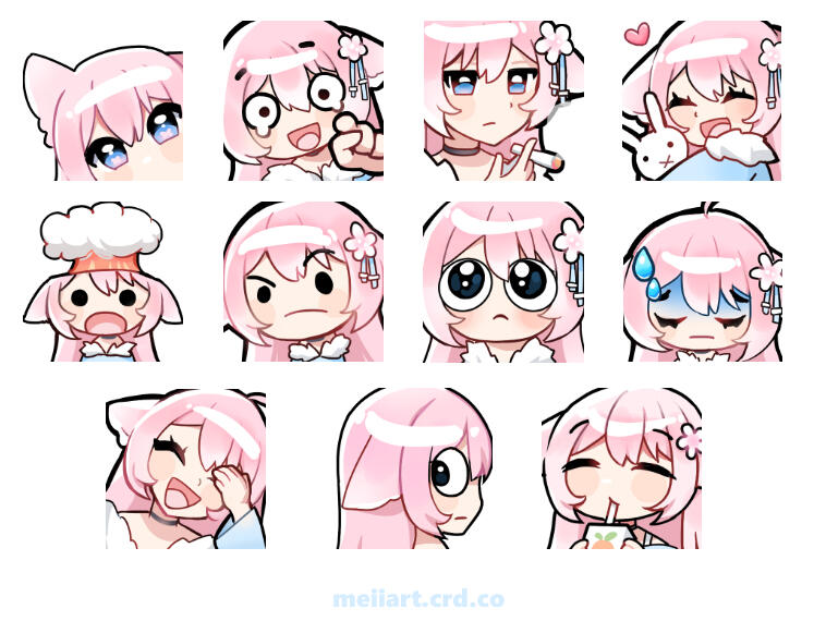 ex: Sunglasses, Rainbow, Tears, Ears, Tail etc.